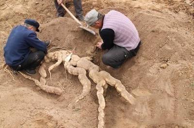 當大部分被挖出後,阿伯,很是激動,立馬回村裡,叫來自己的好友,他們一起把它完整挖出。
