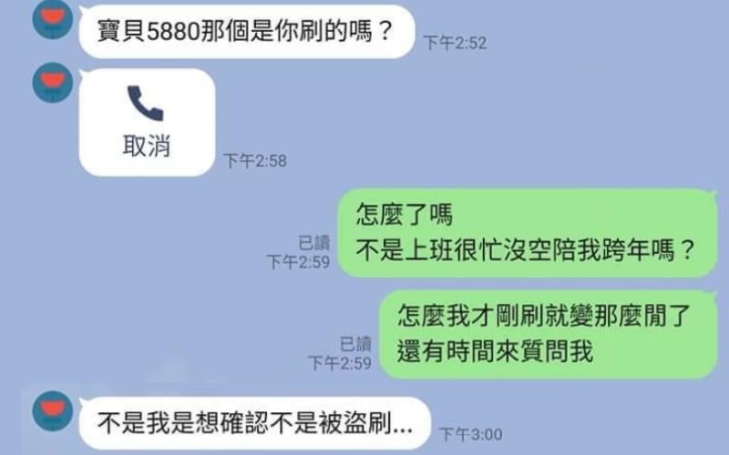 對方只是表示以為被盜刷,所以嚇了一跳詢問,然後 …女表子咧?女表子在哪??