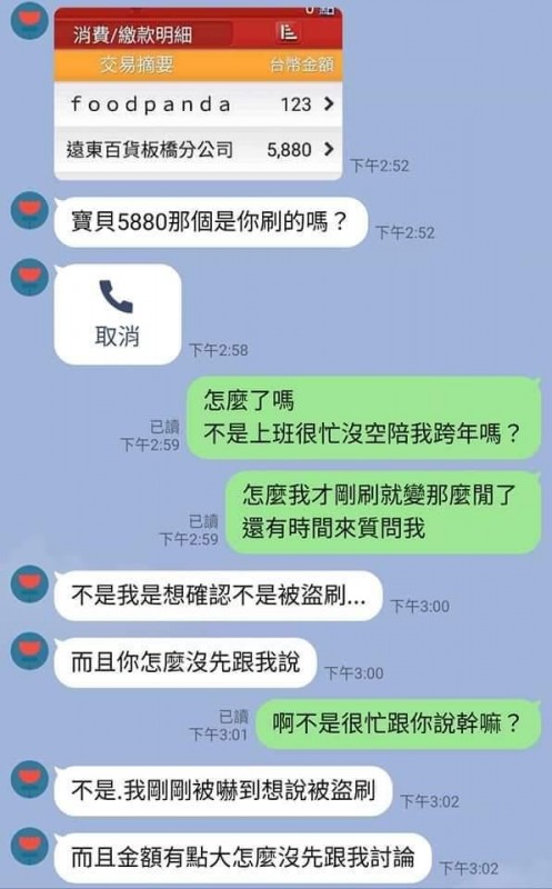 因為男友沒空陪她跨年,所以她用男友的卡刷了禮物慰藉自己