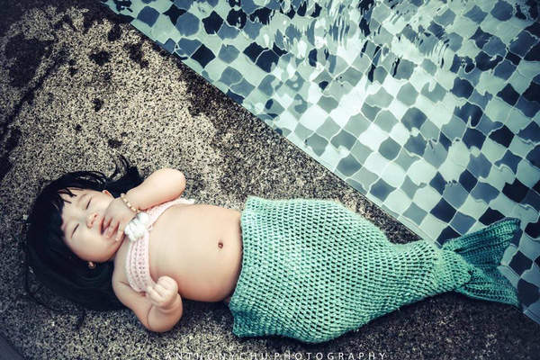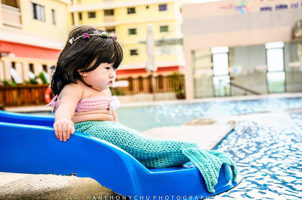 相信很多媽媽最大的樂趣就是裝扮寶寶,小小胖胖的孩子就像是洋娃娃一樣,不論穿上甚麼服裝都可愛到不行!越南一位媽媽就把自己的女兒扮成小美人魚,沒想到成果竟意外超Q,還因此在網路上爆紅呢!