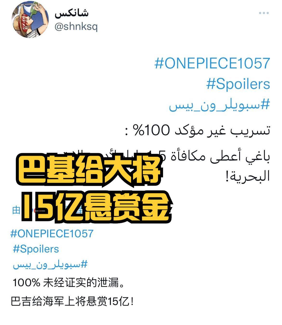 除了大和之外的另外一個重點就是巴基新成立的十字公會給海軍的懸賞了,巴基真的是海賊界第一人,反向給海賊進行懸賞的人也是前無古人,后無來者。而大家對於巴基對海軍懸賞多少還是很好奇的,而按照最新的情報來看的話巴基給大將的懸賞是十五億。