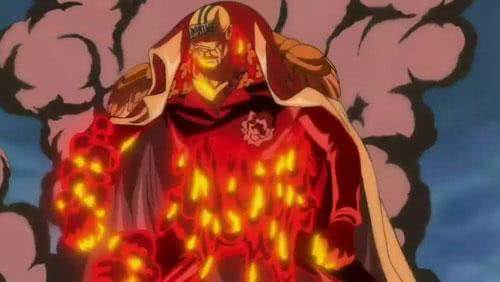 頂上戰爭的MVP,打出最多的輸出,承受的傷害也是海軍一方最多。為什麼說他的果實開發很好呢?只憑除了香克斯和暴走的白鬍子能接他的招打到他的實體(艾斯沒死之前,白鬍子沒暴走,赤犬一點傷沒受!),盛怒的艾斯和赤犬對了一拳,受不住赤犬的溫度被灼傷!小馬哥曾踢飛過黃猿,鑽石喬治也曾撞飛過青雉,說明這二人的霸氣雖不至於能造成太大的傷害,但至少說明能打到青雉、黃猿。但二人包括其他白團隊長們阻止赤犬追殺魯夫時,一起上都沒用,霸氣全不管用,沒有赤犬果實開發程度高,打不到實體!