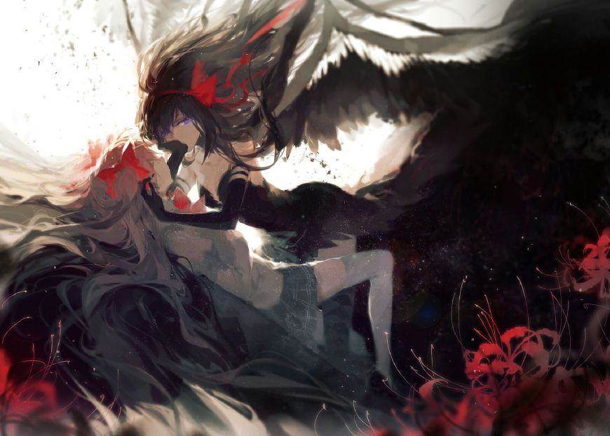 當她們得知成為魔法少女后就意味著付出了靈魂的代價,生命已經不再屬於自己而是取決於靈魂寶石的狀態,鹿目圓目睹了沙耶香和佐倉杏子的掛去,也從丘比那裡得知了人類作為魔法少女與丘比一同走過的歷史。一方面了解焰在過去無數次地試圖拯救她、另一方面看到歷史上許多魔法少女痛苦經歷后,也找到了自己真正的願望。