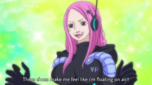 畫面轉向蛋頭島。波妮使用果實能力,把魯夫和喬巴變成老人,她自己和甚平則變成了小孩。尾田曾經公布了魯夫和喬巴的老年形象,以及甚平的幼年形象,都和波妮變的完全一樣。看來波妮才是拿了劇本的女人,前知50年,後知50年啊!
