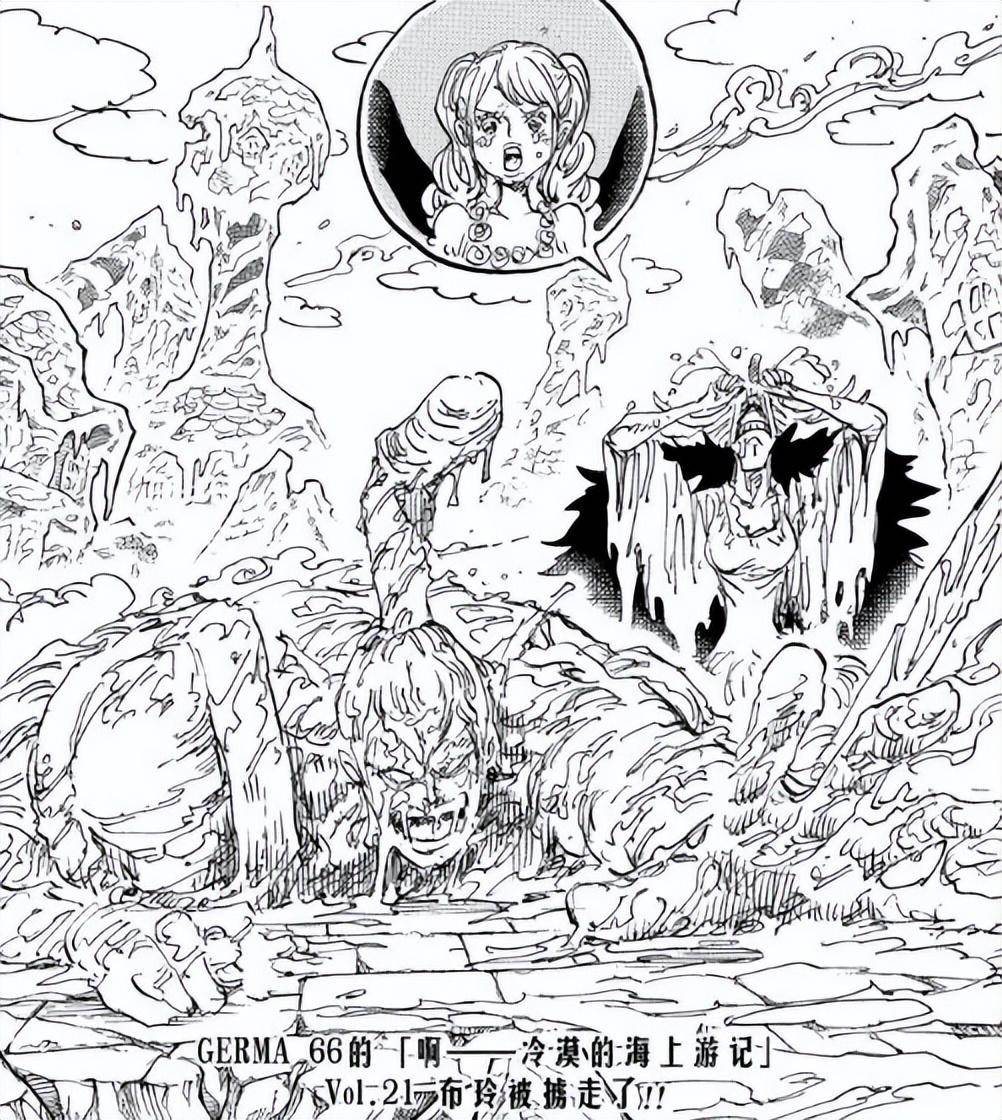 而在漫畫最新的1064話扉頁中(暫時只有文字情報),擄走布琳的人已經確定了,他們就是黑鬍子海賊團的青雉和范奧卡,他們把布琳綁在了黑鬍子船上。此時的布琳已經打開了額頭的第三隻眼睛,不知道是不是覺醒了,並且她還說大媽已經死了。