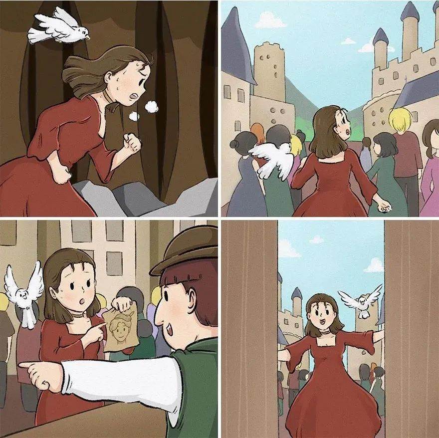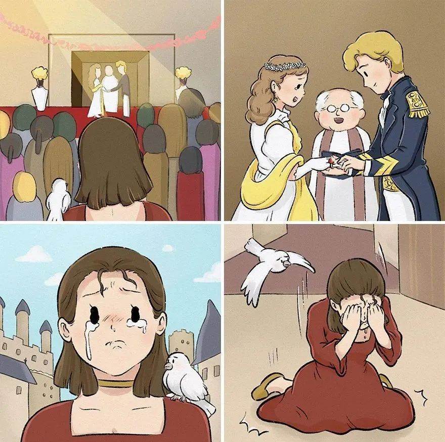 打開門的那一刻,她難過極了,因為長發公主看到那個男孩正在和其他的女人舉行婚禮。
