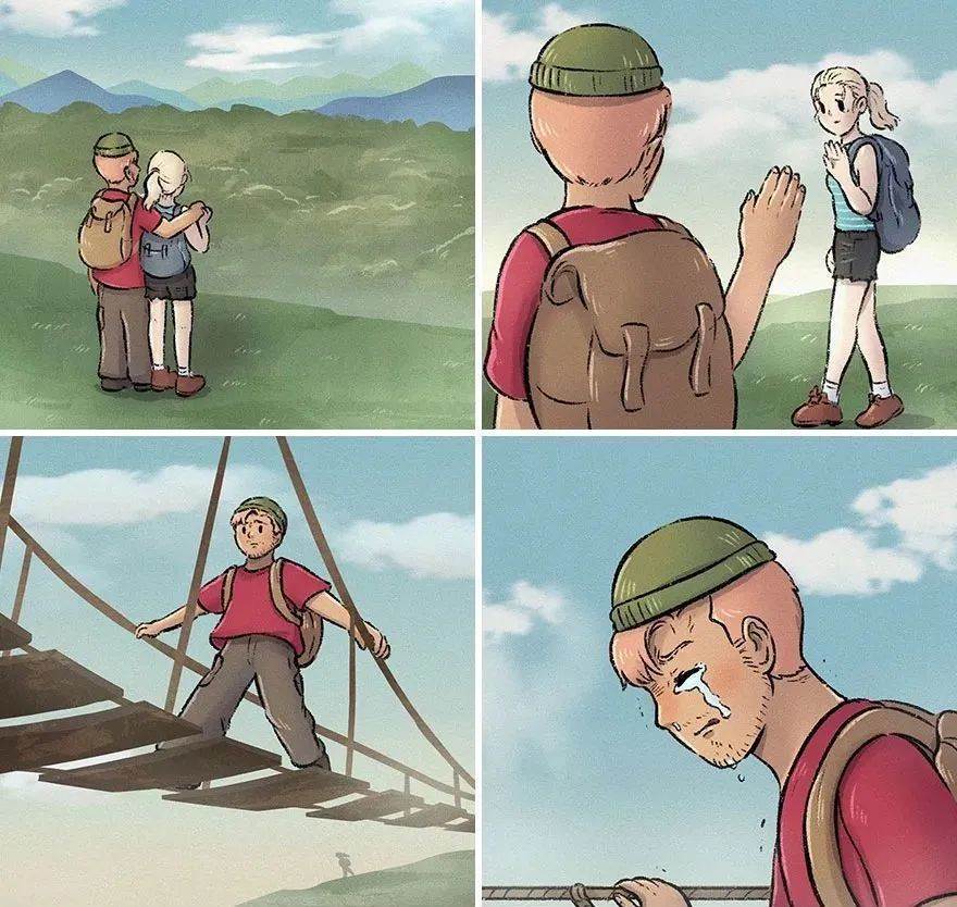 在這里他們選擇分開,男孩忍著眼淚繼續前進。