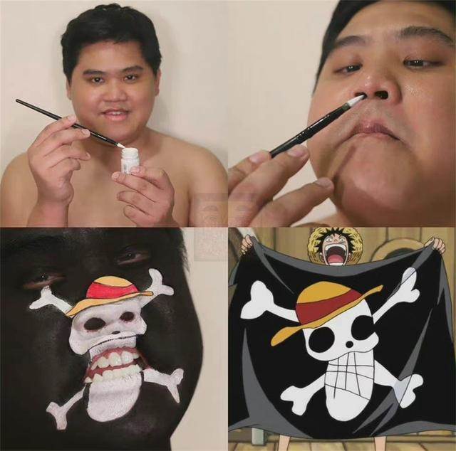 最後就是泰國小哥cos的草帽海賊團的海賊旗,從成品來看確實不錯,外觀和造型也和動漫裡面的海賊旗相差無幾。 泰國小哥在cos草帽海賊旗的時候用的是自己的整張臉,不得不說泰國小哥的臉也是真的大,而且這一口白牙也是貨真價實。