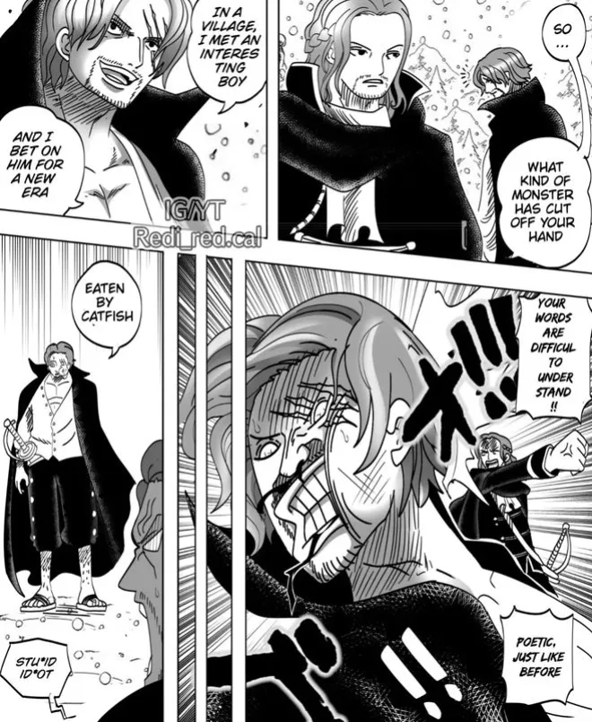 香克斯與夏姆洛克見面!兩人說法方式挺有趣,而香克斯也被夏姆洛克打了一頓