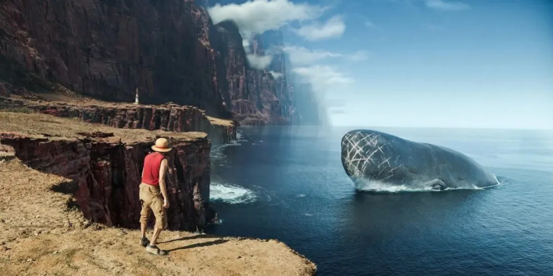 這張包含真人劇版拉布的關鍵視覺圖,展示了這個《海賊王》角色的具體形象——該角色此前已在2025年8月的預告片中登場。在當時的預告畫面里,我們僅能看到黃金梅利號駛入鯨魚口中的場景,只能瞥見鯨魚口腔內部;而此次的視覺圖則從正面呈現了鯨魚的全貌,還能清晰看到它多年來留下的多處傷疤。