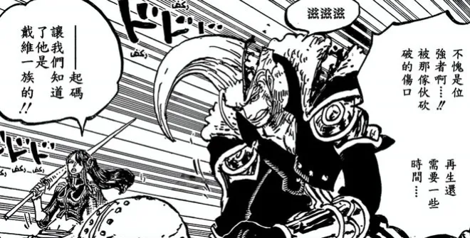 在最新話1162話里,洛克斯營救自己的妻兒,單手都可以將加林聖砍成重傷,而且後者還多虧了不死之身,不然他就人頭分離了呢!