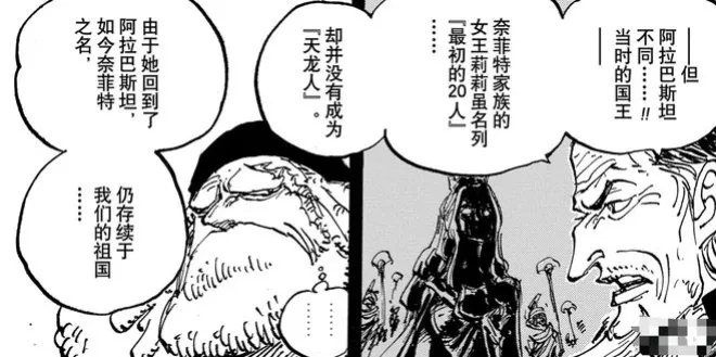 寇布拉國王跑去五老星那詢問其800年前的莉莉女王線索,她到底去了哪裡!她沒有當天龍人,回到了阿拉巴斯坦,讓這個國家一直都存在!可是問題來了,她卻離奇的失蹤了,只留下一封信!