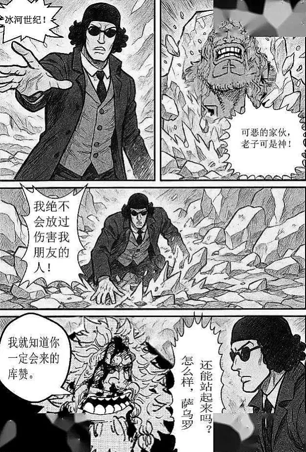 之前還以為是山治來救薩烏羅啊,但沒想到居然是他之前的朋友,是前任海軍大將青雉,如今是黑鬍子海賊團第十號船長。但青雉來到這裡也是執行任務的,只是沒想到薩烏羅居然沒死,還居住在艾爾巴夫,簡直是難以置信。
