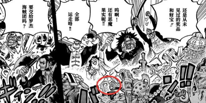 除此之外,本話還爆出來一個非常炸裂的資訊!那便是羅傑海賊團他們收穫了大量的財寶和惡魔果實!尾田大神刻意將2顆惡魔果實藏起來,不放大看還真不好發現!