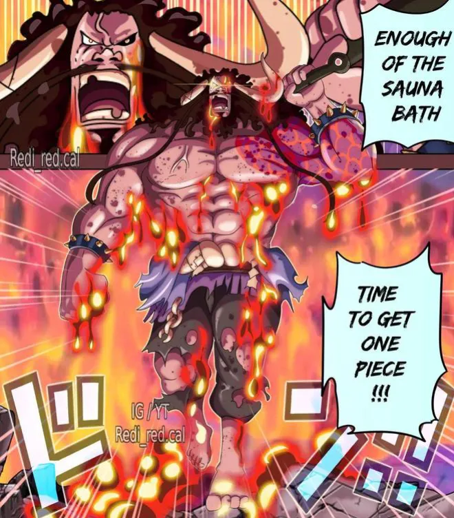 凱多和大媽被海底火山爆發而炸飛,大媽被斯慕吉救走,凱多沒死還意外獲得岩漿之力!