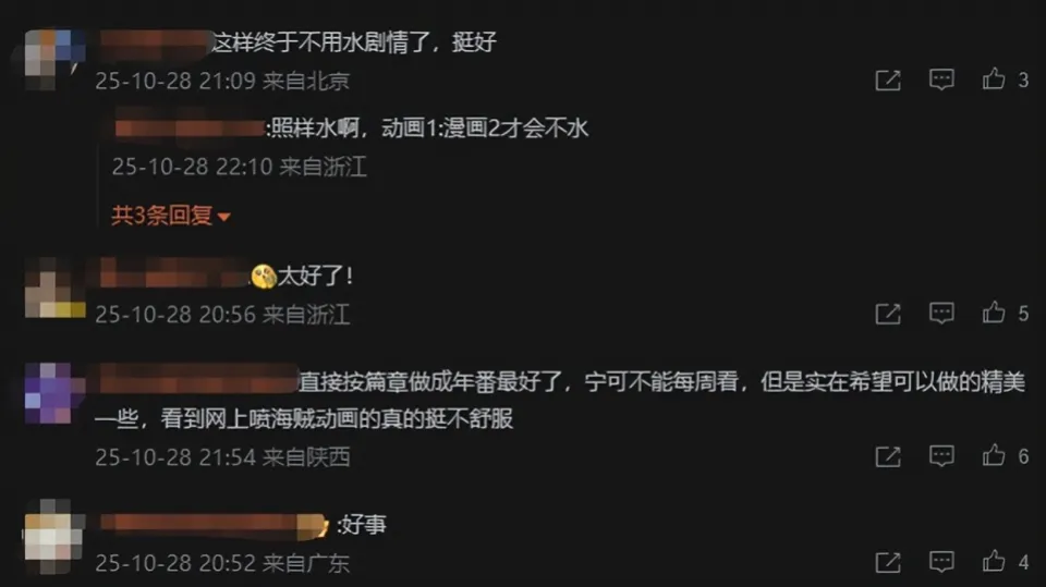 而現在集數變少了,這代表動畫組不光壓力小了,而且更有內容可以做了,水劇情的情況將會大大減少,動畫的質量也會大大提高,現在很多長篇漫畫也都採用的季播的方式。當然,具體《海賊王》動畫的質量能有多大的提升,我們還是要等明年新政策實行後才能見分曉。