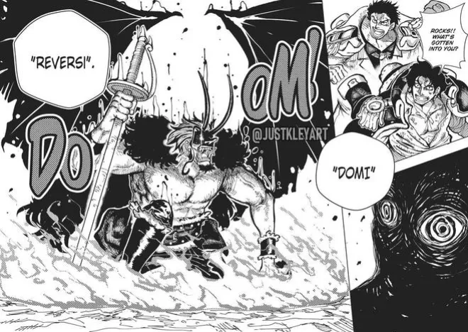 尾田:原來如此。震驚嗎?這個有點難以解釋,不過我認為所有人都對世上一切有著巨大的「慾望」,只有在擁有能夠抑制慾望的「理性」之後,才能成為「人類」。如果把理性當做是「正(釋迦)」,把本應無法分割的,對天龍人的憎惡、不能殺人的常識等等都歸類為理性的話,可能實際上每個人的心中都有「天龍人」。以上就是我的極端想法。請大家隨便看看就好(笑)。