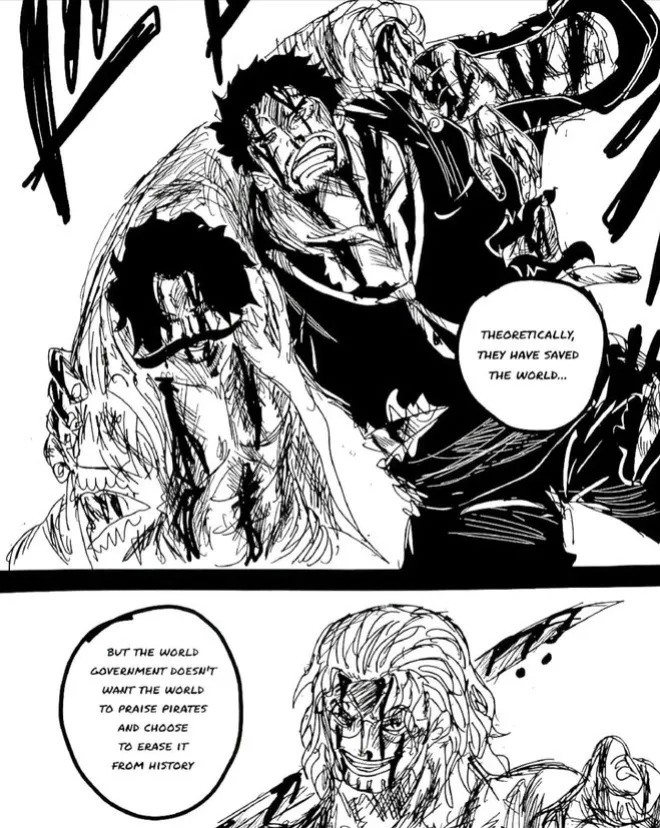 這場戰鬥可謂是史詩級的!戰國說得沒錯,惡魔洛克斯就是羅傑遇到的第一位且最強的敵人,沒有之一。本身的洛克斯就比羅傑強一些,惡魔的加持更強,跟卡普聯手也才勉強戰勝過他。