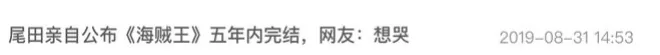 同時現在《海賊王》作為JUMP最賺錢的漫畫,集英社也不願意《海賊王》快速完結,肯定會跟尾田進行商討的,畢竟失去了海賊王,那如同失去提款機啊!