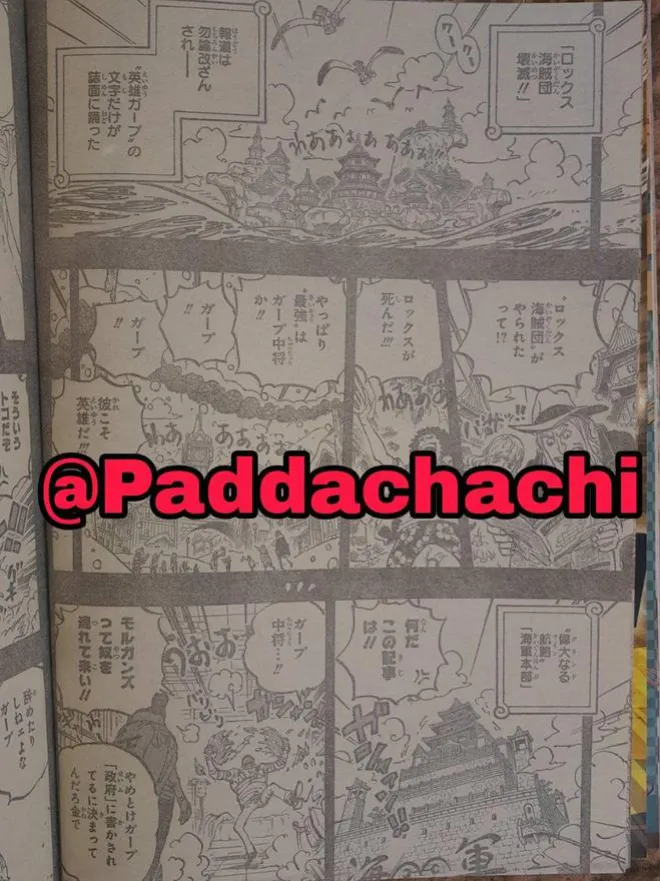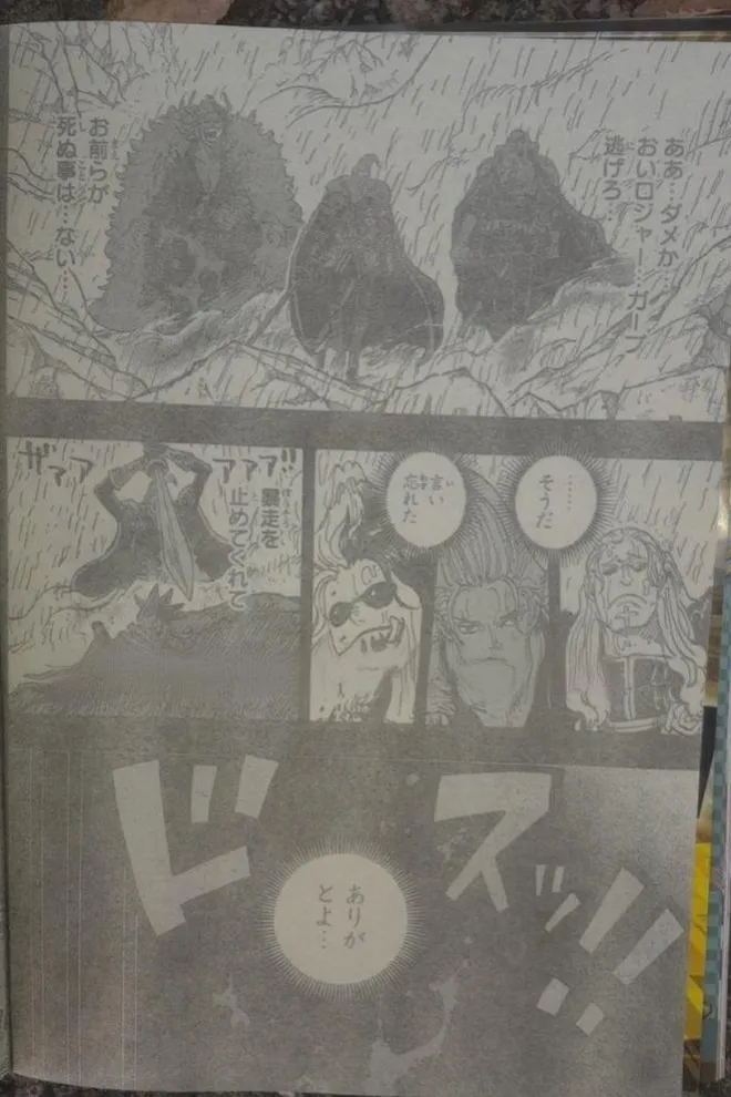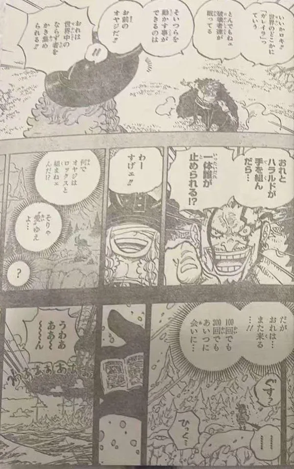 分鏡里出現了神之谷已經分東離西,快支撐不住了!而雷利也告訴卡普和羅傑,洛克斯已經領盒飯了!