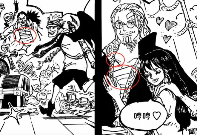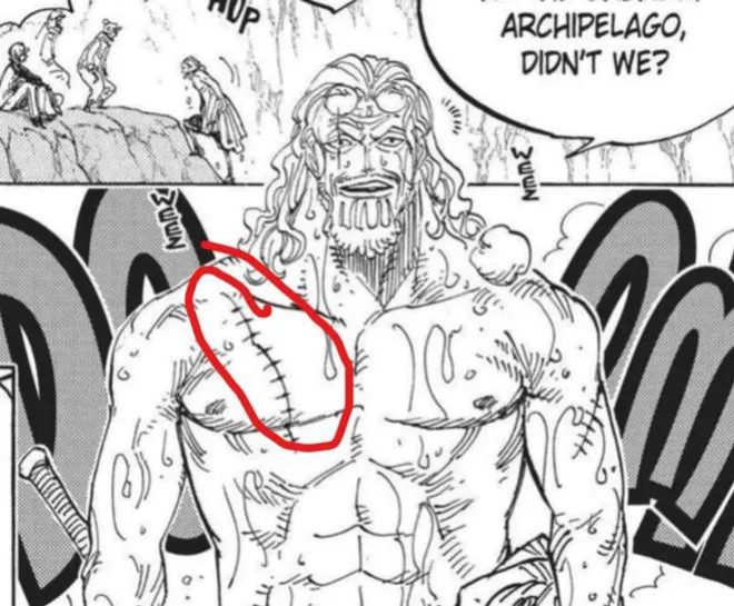 後期看到的雷利的傷疤更長,說明在未來的劇情,雷利同樣被某個敵人傷到的,傷口變長了!至於是不是加林聖,還有得確定。
