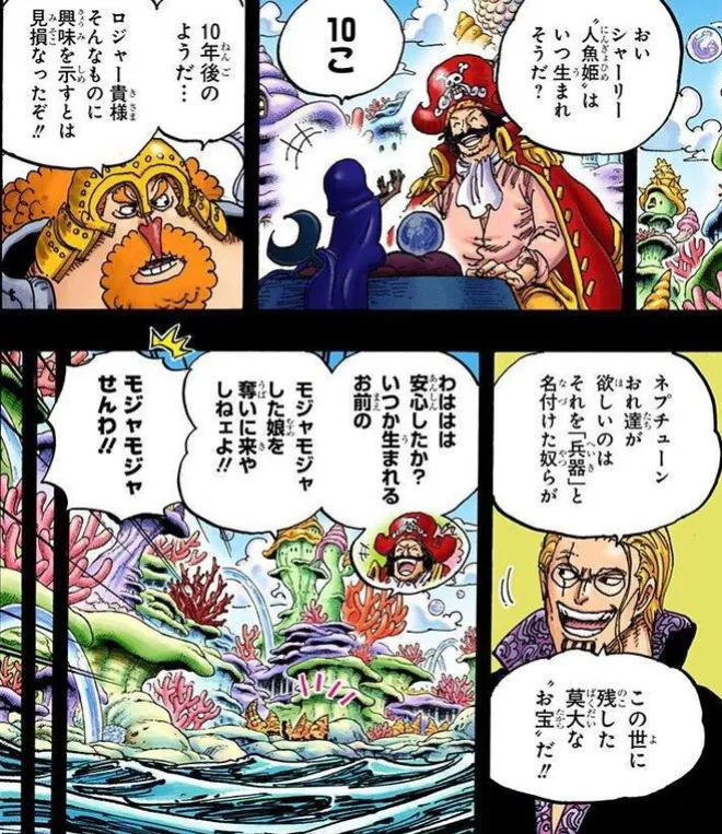 目前海賊王1167話的情報提到了哈拉爾德也來到了海底的魚人島,在這裡與國王尼普頓喝酒聊天,甚至還提到了即將要出生的女兒【白星】!這裡的時間線是20年前,距離白星出生還有4年時間。