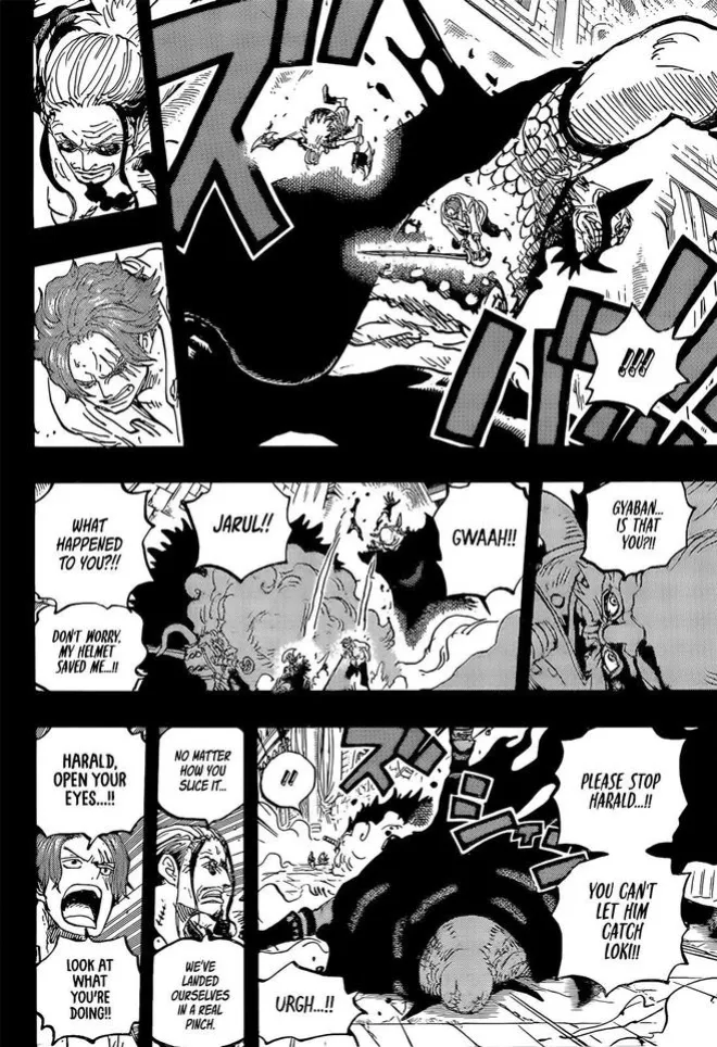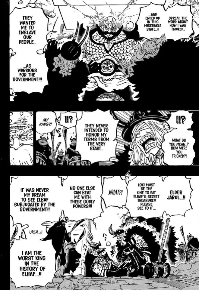 洛基和亞魯魯兩人對哈拉爾德一頓收拾,勉強將其按在地上。這讓哈拉爾德有了一些清醒,說出了真相!他被世界政府騙了,所以他讓洛基必須阻止自己的行為,同時你一定要吃下傳說中的惡魔果實和拿下鐵雷,唯有如此,你才能將我殺死。