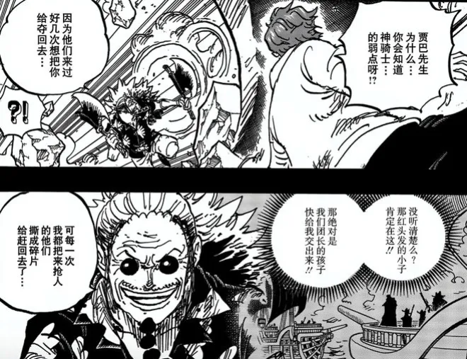 還有賈巴提到一個非常關鍵的資訊點!很多年前神之騎士團多次來找羅傑海賊團搶奪香克斯,因為他們發現香克斯就是他們團長加林的兒子。