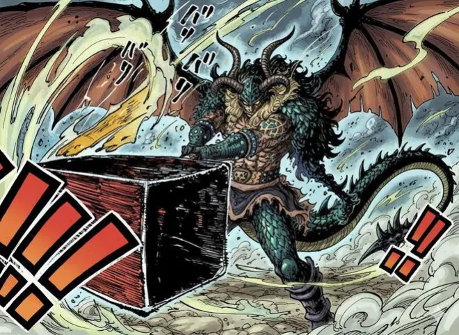 是滅世黑龍·尼德霍格形態!相當巨大的體型,有翅膀,跟凱多的青龍形態完全不一樣!這條龍看起來就十分邪惡,也不知道尾田為什麼要如此安排呢?是要致敬北歐神話的【諸神黃昏】嗎?
