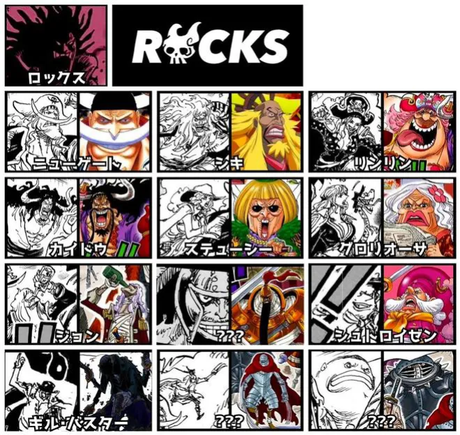 如洛克斯海賊團的約翰船長、甘孜、基爾·巴斯達三人的能力分別是超人系磁磁果實、炸彈果實、幽靈果實。尾田表示是這樣的,後面這三顆惡魔果實分別被基德、mr5、佩羅娜所吃!