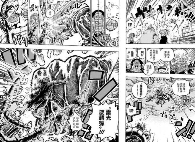 只見路飛開啟全新招式並融入天上的雷電,搭配武裝色和霸王色霸氣,一邊克制惡魔果實,一邊破解不死之身並讓它緩慢的恢復起來。路飛這一招帶了雷電,可以不斷粉碎索瑪茲的身體,直接誒將他整個搞得四分五裂,也算是徹底領盒飯了!