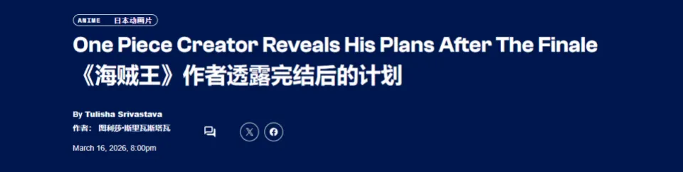 外媒comicbook報道,作者尾田榮一郎在Netflix播客中,首次公開漫畫完結後的規劃。