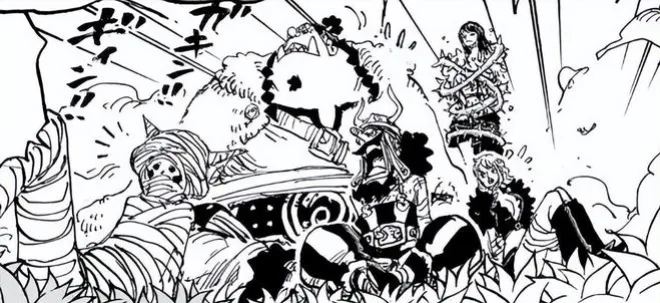而最激烈的莫過於尾田大神的經典操作,憤怒的路飛對著伊姆瞪眼,因為他看到了自己的夥伴烏索普和布魯克倒在地上。