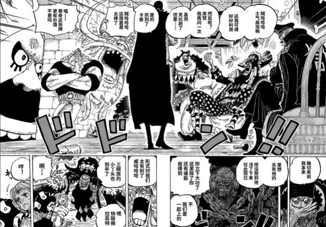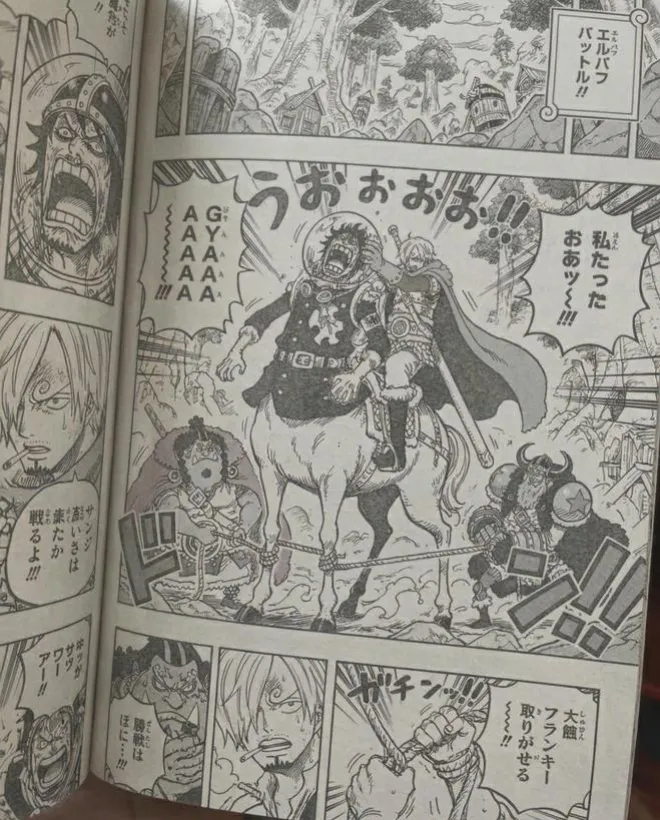 原來這就是神之騎士團嗎?戰鬥力沒有我們想像中那麼強大啊!破開了不死之身的弱點,跟巴基的四分五裂果實是一樣的。為此,山治吐槽了一波,並且在最新話里還蹂躪了麒麟戈姆,把他當馬騎,狠狠戲耍了,哈哈。