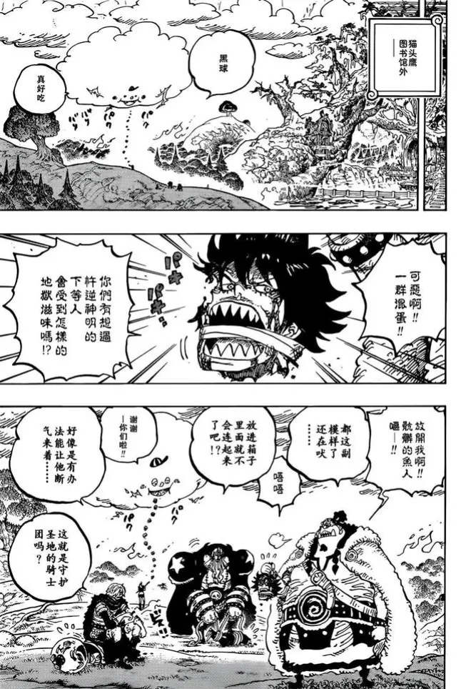 原來這就是神之騎士團啊,戰鬥力根本沒我們想的那麼強。破開他們不死之身的弱點後,就跟巴基的四分五裂果實差不多。山治還吐槽了一番,最新話里還把麒麟戈姆當馬騎,狠狠耍了他一頓,哈哈。