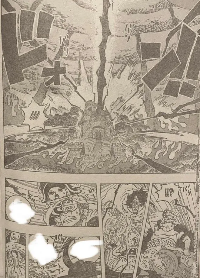 一聲巨響+霸王色霸氣充斥著整個陽界,巨人小孩們都被震暈了,就連索隆一行人都感到十分不妙。而此時的伊姆也降臨了,巨大的黑色閃電轟向城堡里。