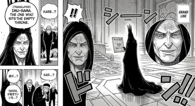 但是,要注意伊姆此時還是黑漆漆的身影,後面公布出來的容貌其實是他惡魔果實能力變身後的形態,這跟他本體還是有明顯的區別的,這就是為什麼尾田要刻意安排,就是不讓我們這些動漫迷提前看到戴著王冠的伊姆的樣子。