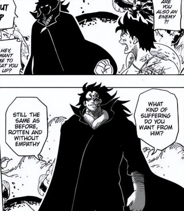伊姆現如今的戰鬥力是沒人可以戰勝他的,為此在巨人島艾爾巴夫篇里他可以輕鬆拿捏路飛和洛基!而且為了劇情需要,伊姆會展示碾壓性的戰力去吊打路飛和洛基,讓所有人都感受到絕望,這才符合一個最終BOSS·世界之王的實力和壓迫感!跟當年的和之國打凱多一樣,簡直是無敵的存在。