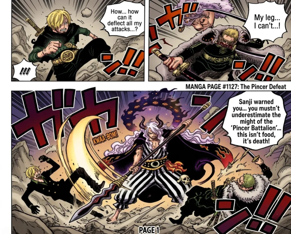 索隆都拿出「地獄之王」的形態了,結果被伊姆的尾巴直接擋住(情報師特意說不是手指,別搞錯啦);山治最擅長踢技,卻被伊姆正面用踢技針對,這差距也太大了吧😭
