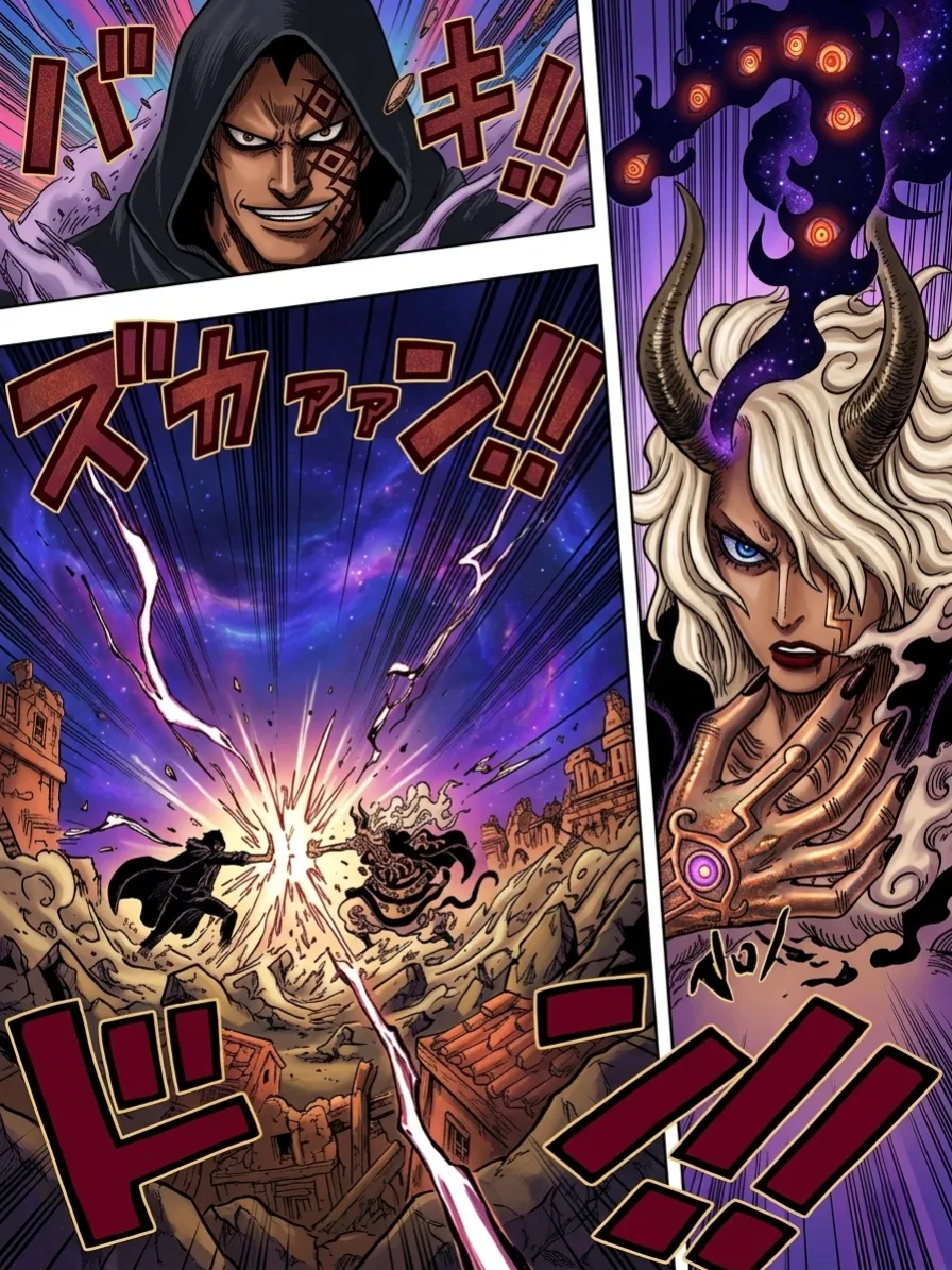 情報里說有「黑色背景下的黑火」,一看就是伊姆的果實能力,自帶毀滅感,想想都覺得壓迫;還有個細節,有人被切斷了手指,這力度,足以看出伊姆的攻擊力有多恐怖,上一話的壓迫感直接延續,甚至更甚!