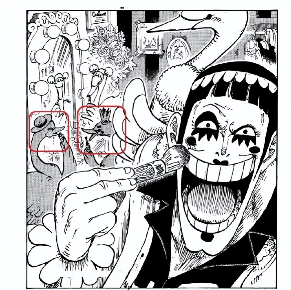 而對於喬伊波伊和伊姆大人是朋友這件事,尾田其實在作品中已經埋下過伏筆了,在漫畫第1172話,尾田應讀者要求畫了一幅天鵝在化妝的扉頁,而在這張扉頁中,我們可以看到畫面里有兩隻天鵝正在邊聊天邊化妝,一隻帶著路飛標誌性的草帽,另一隻則帶著一個王冠。
