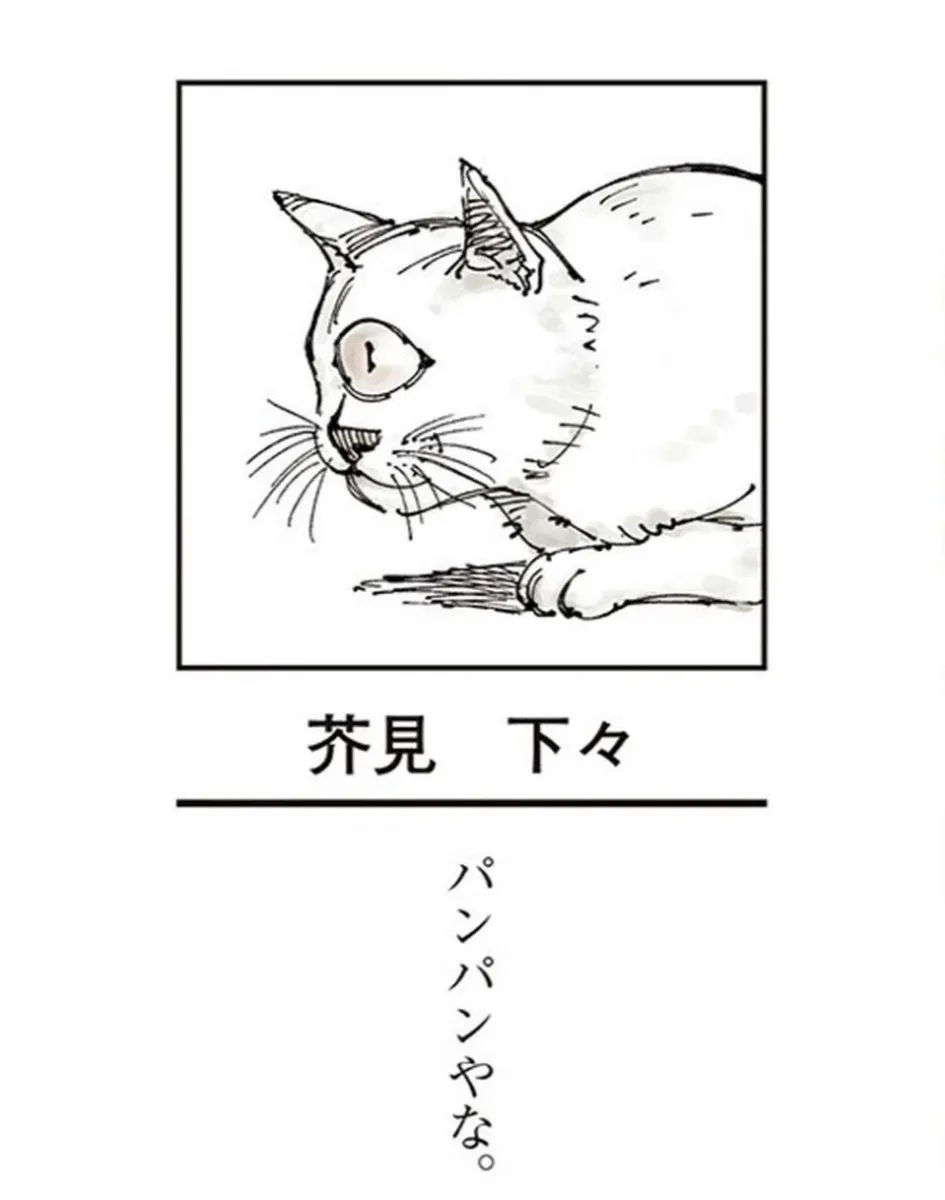 可能是怕被粉絲線下單殺,芥見下下也從來沒露過臉,他的自畫像是一隻獨眼的貓咪,至於為何選擇這隻獨眼貓作為自己的象徵,他曾解釋道,應該沒有人會討厭貓咪,而畫兩隻眼睛太麻煩了,所以只畫了一隻眼睛。