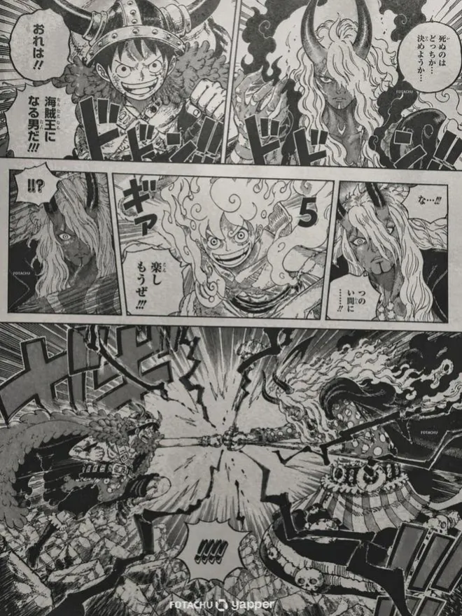 因此當洛基不敵伊姆大人時,吃飽飯的路飛及時出現,阻攔了伊姆大人給洛基的致命一擊,隨後開始變強五檔尼卡形態,讓伊姆感受到這股熟悉的氣息,是喬伊波伊回來了!而兩人也是對碰一拳,開始了他們兩人的戰鬥!